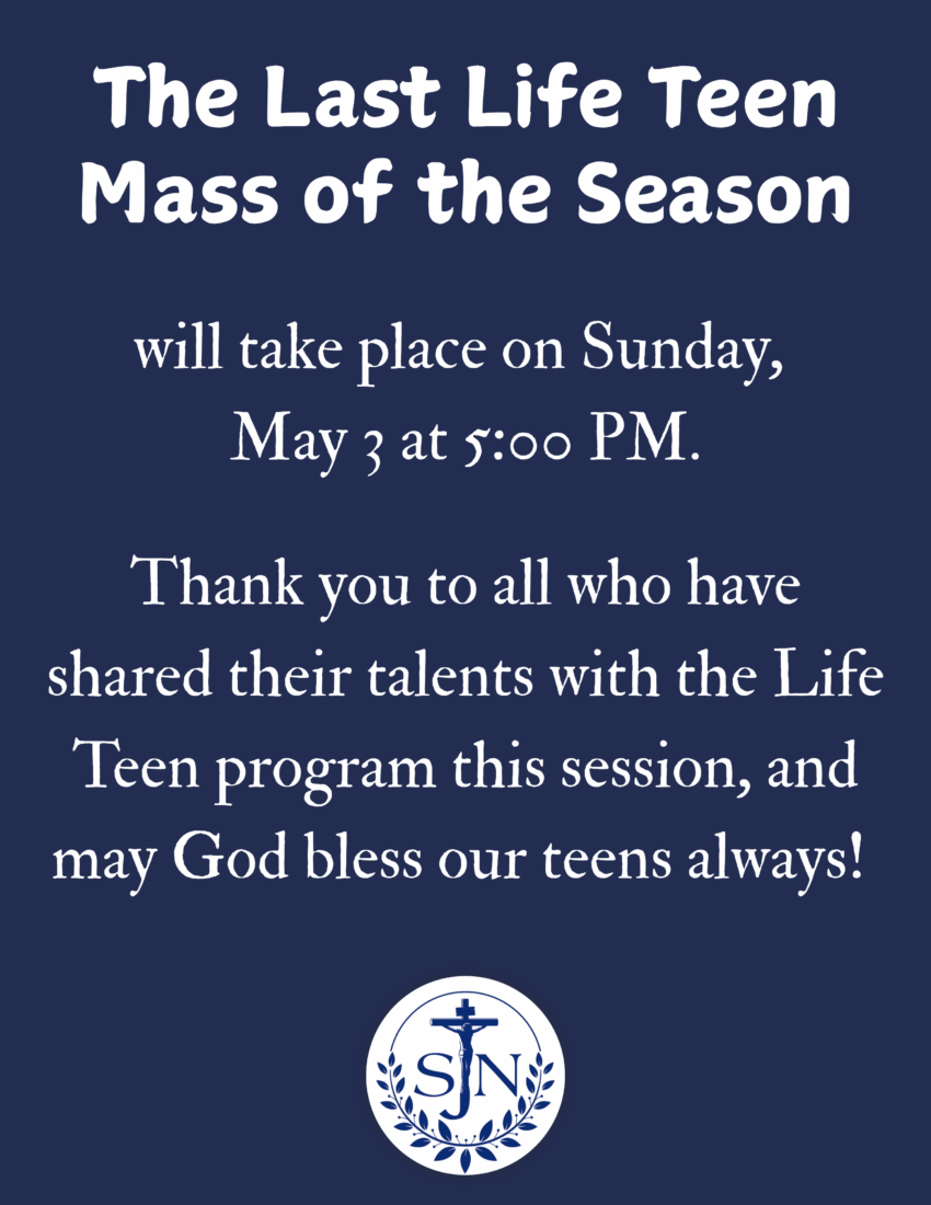 St. John Neumann CASH RAFFLE 2026 Tickets are $25 each or five for $100, and the drawing will take place on Tax Day, April 15, 2026! Grand Prize: $10,000 CASH Second Prize: $1,000 CASH [...]